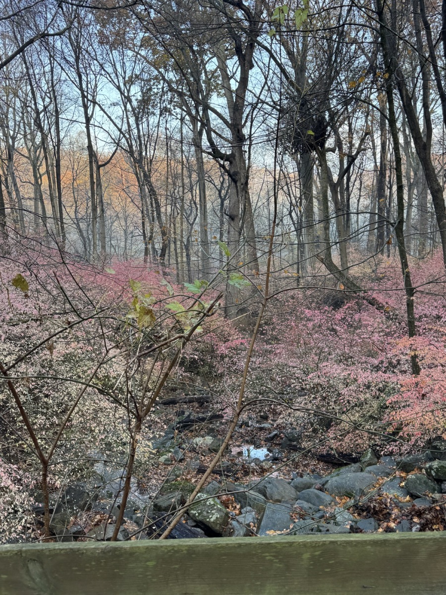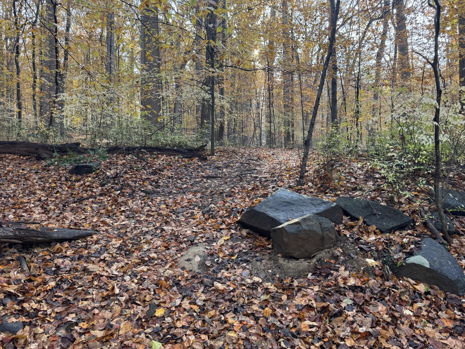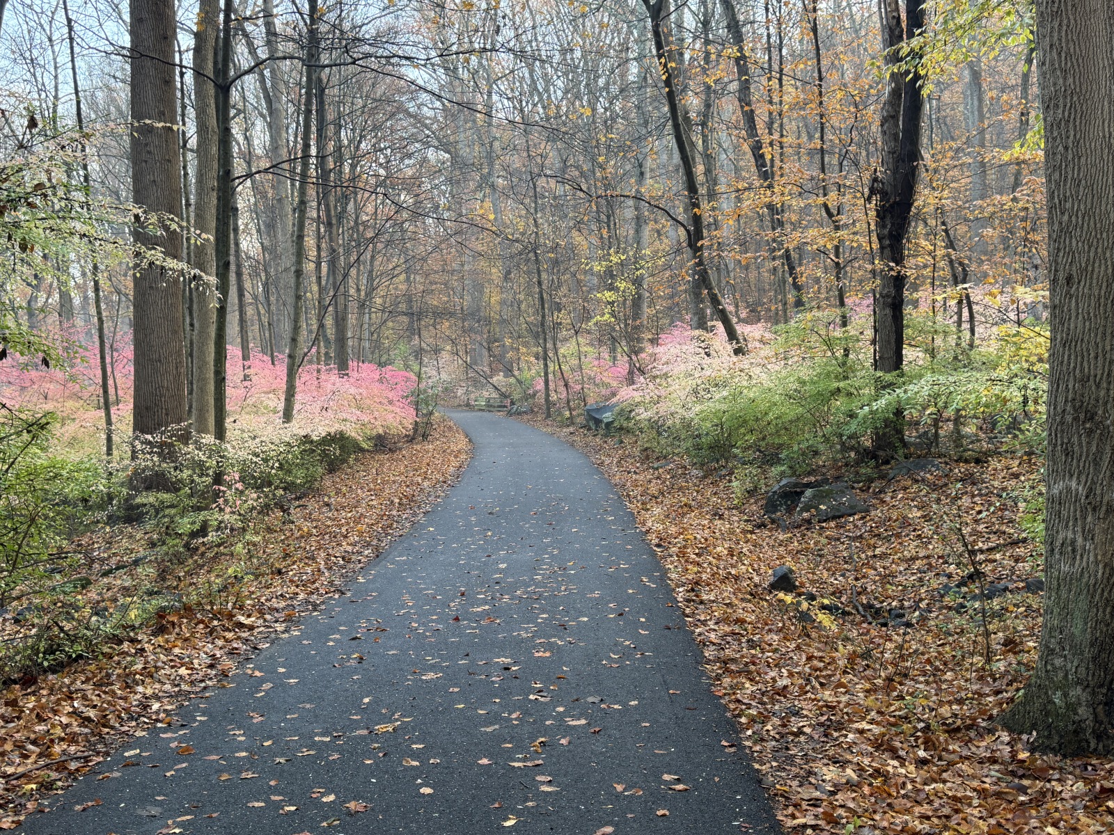I am so glad I did! It was beautiful. I stayed on the paved path because it rained the night before and the leaves were too slippery to walk on the trails. I tried and then decided against it. Check out one photo where I caught a picture of a deer jumping across the path. His partner and child had crossed just before him just ahead of me.